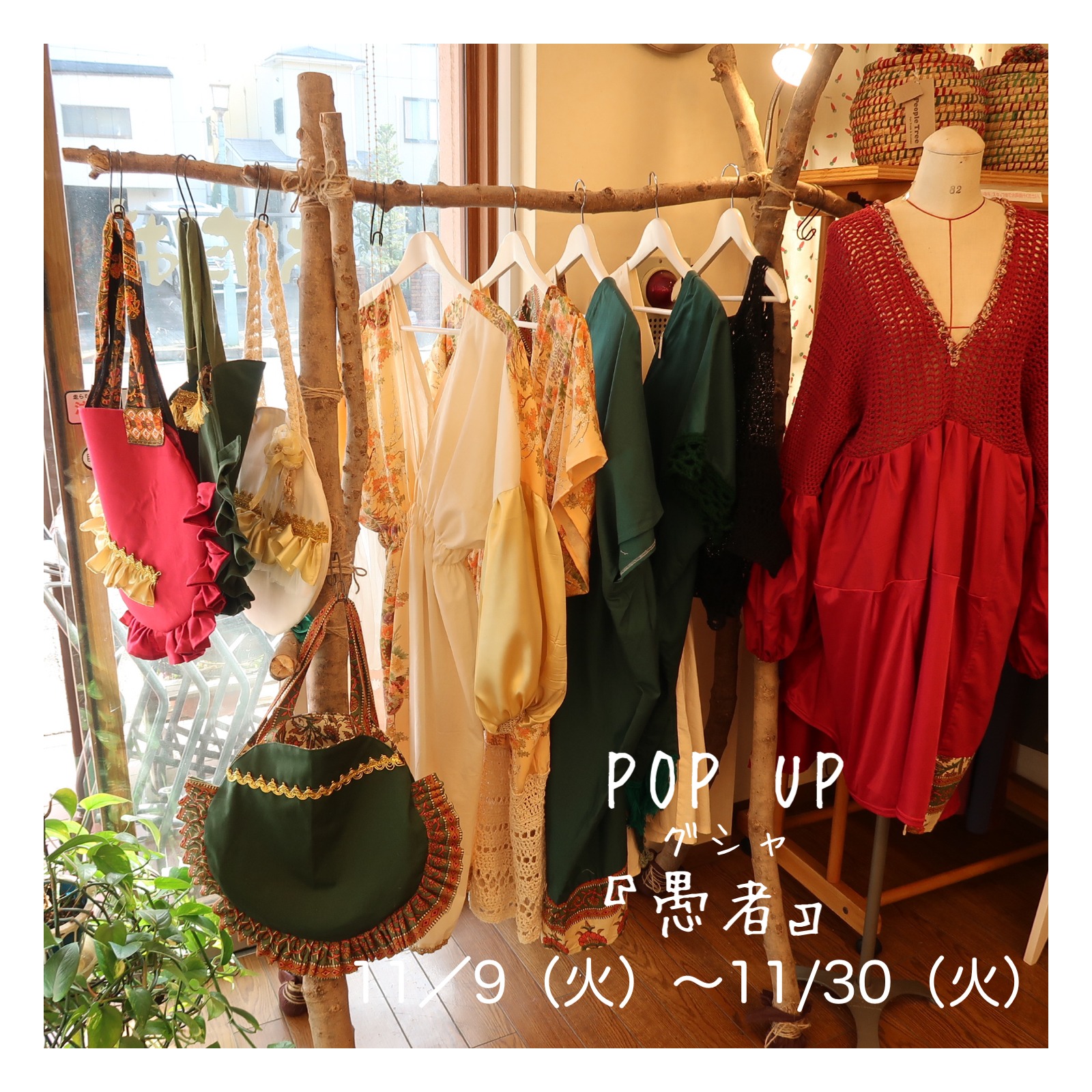 作家のハンドメイドによる洋服、バックを期間限定で展示販売致します。