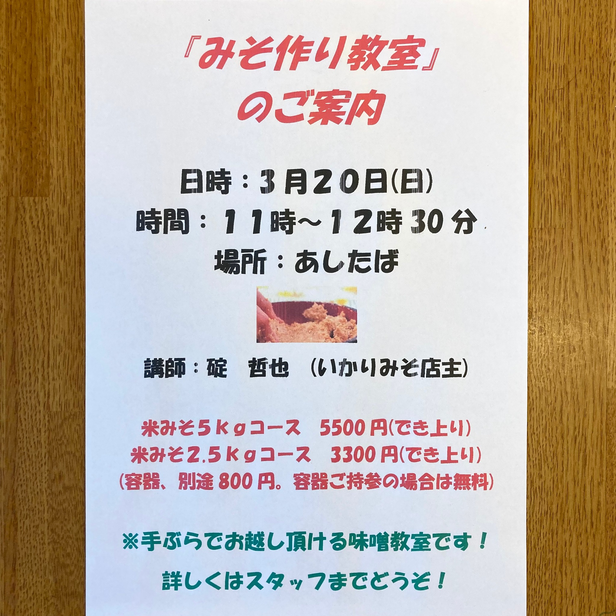 ⭐︎手ぶらでお越しいただける味噌教室です。