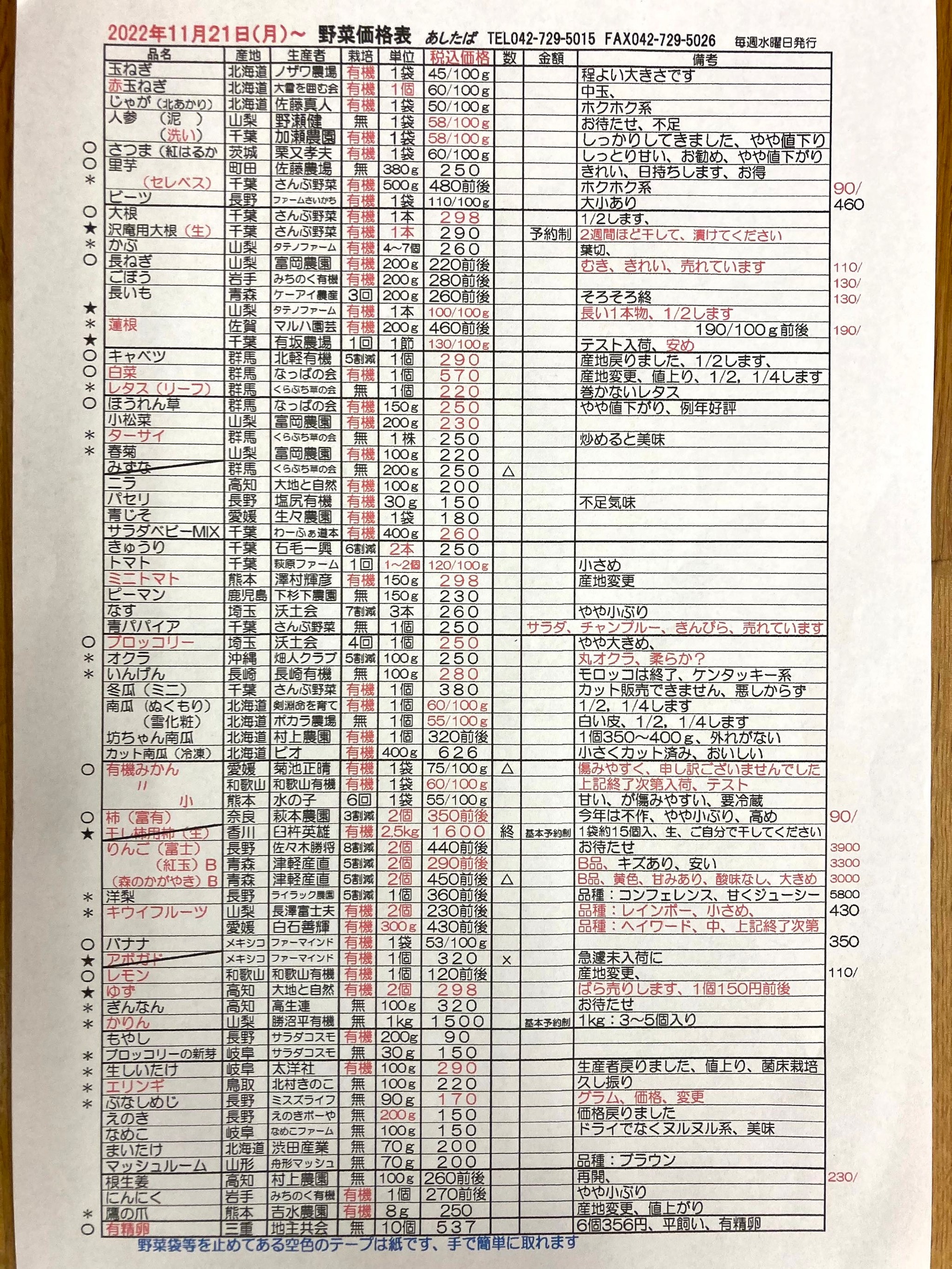 (店舗販売と平行して行っておりますので、お野菜に値札が付いている場合がございます、ご了承下さい。)
