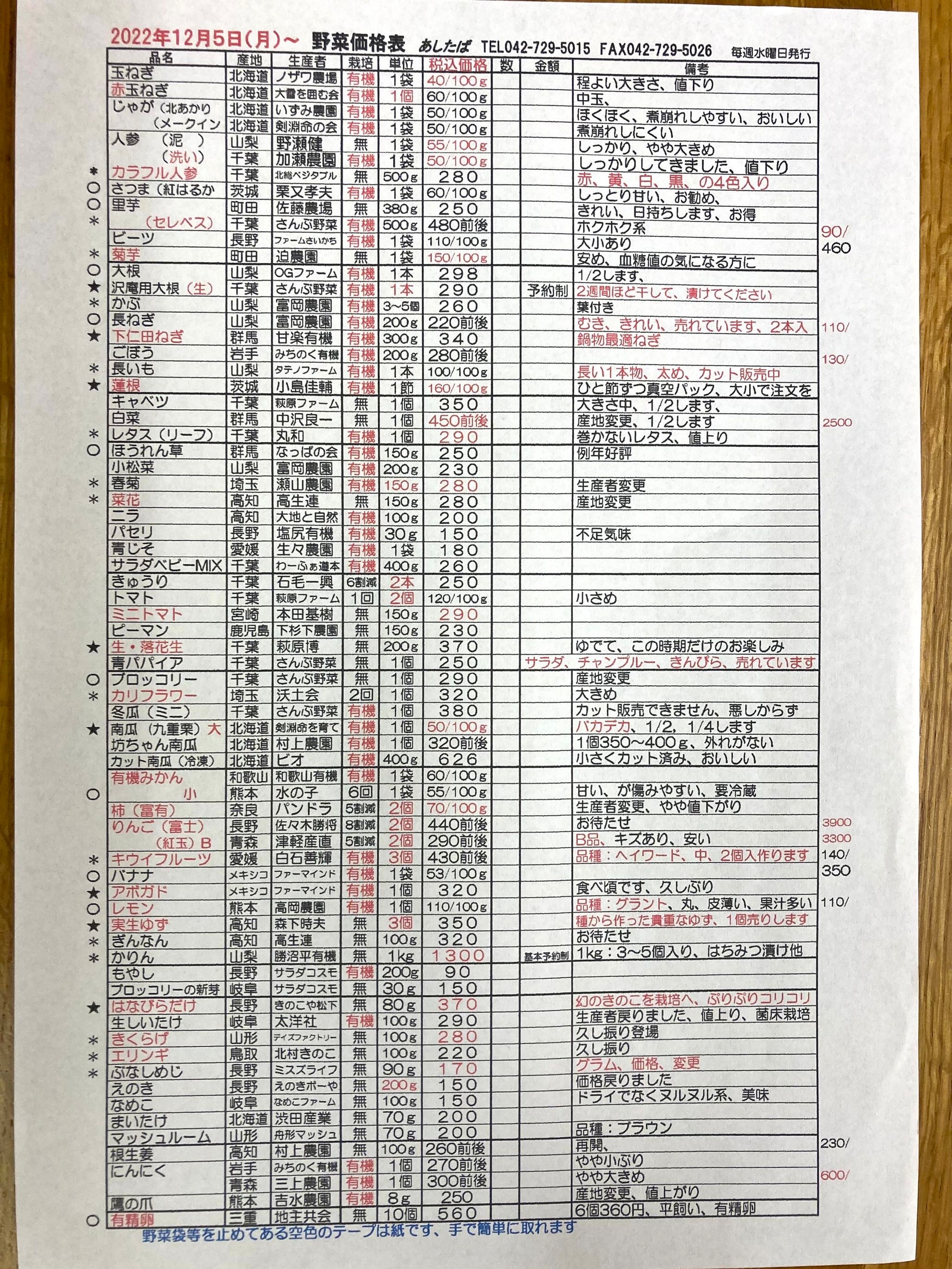 (店舗販売と平行して行っておりますので、お野菜に値札が付いている場合がございます、ご了承下さい。)