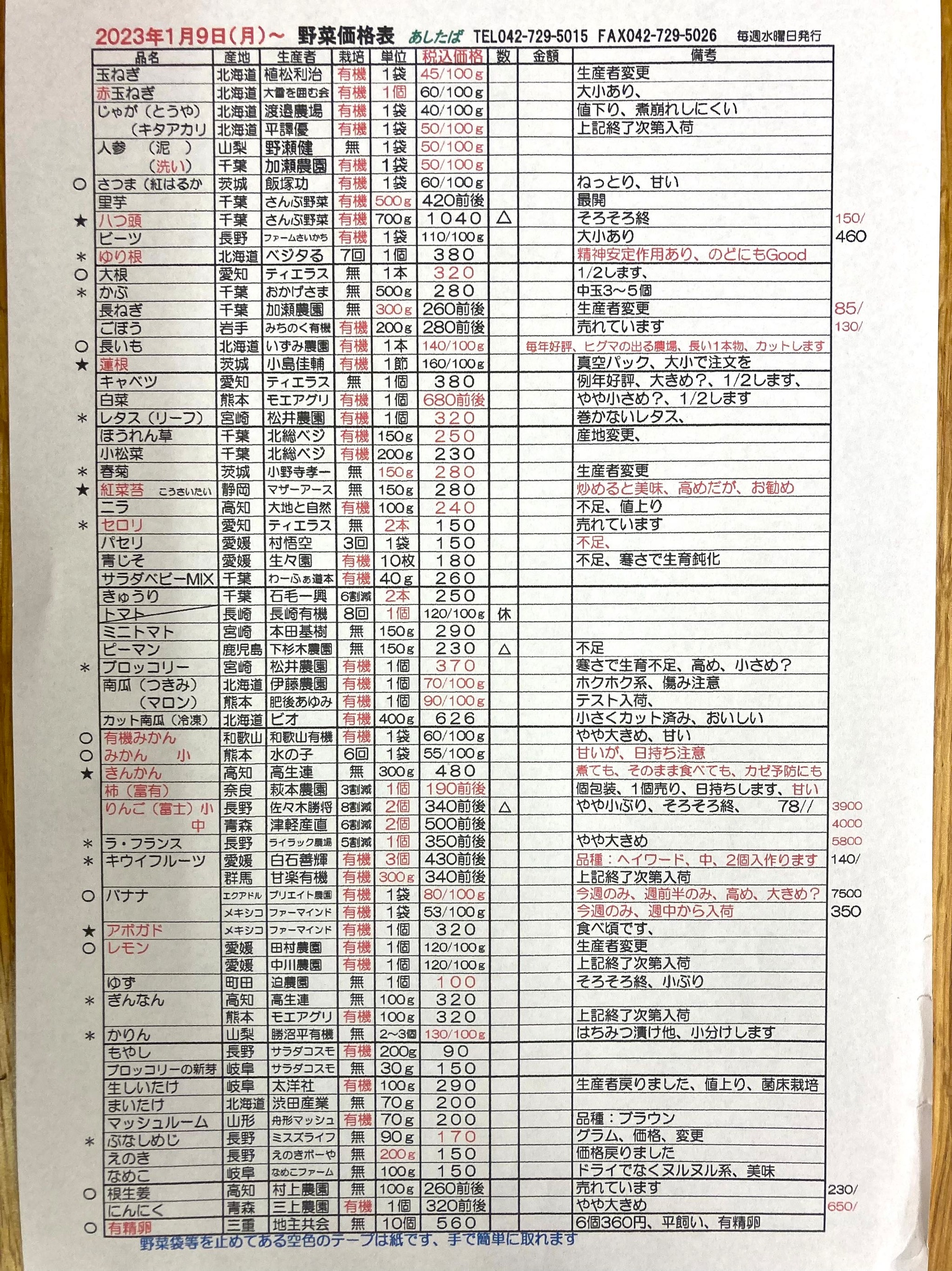 (店舗販売と平行して行っておりますので、お野菜に値札が付いている場合がございます、ご了承下さい。)