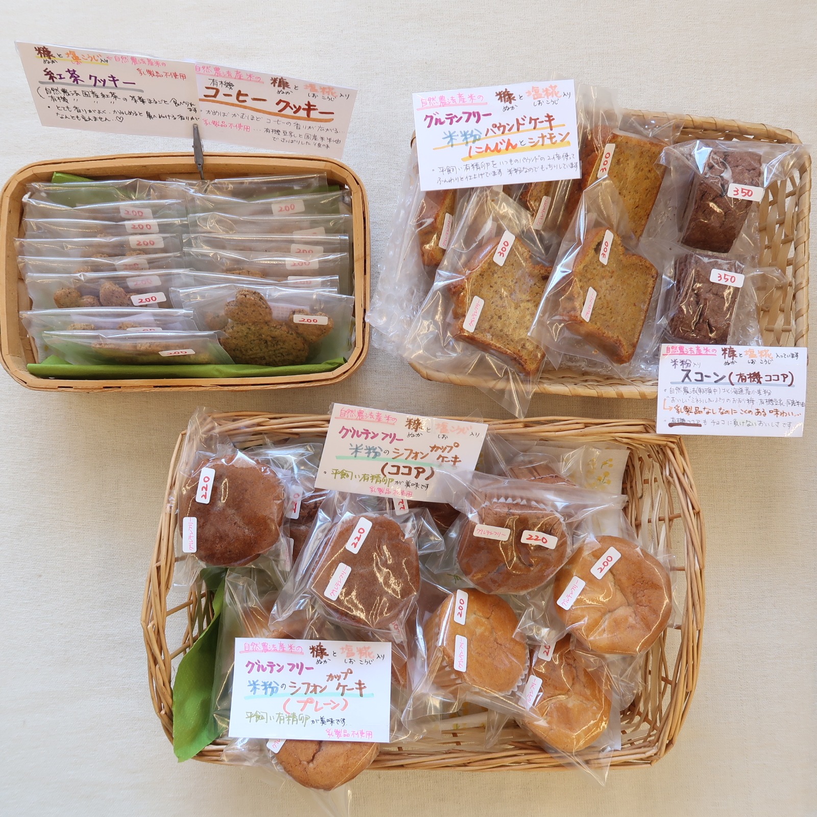 有機素材や平飼い有精卵、自然農法産の米粉など、こだわった素材の焼き菓子は毎月第4木曜日にお持ちしてくれています。