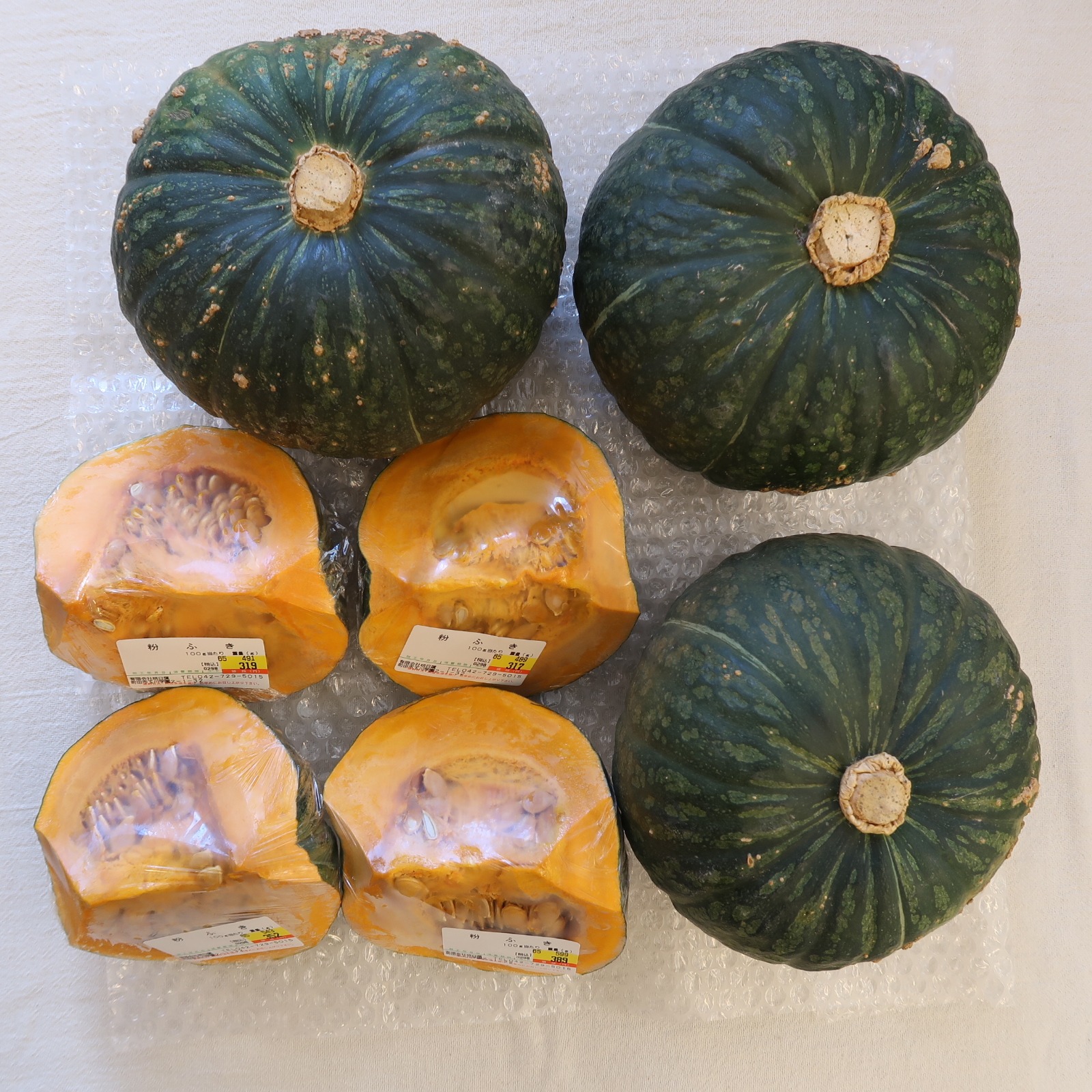 かぼちゃの入荷も少し前から始まっていますが、只今入荷の粉ふきかぼちゃ、ホクホク甘くオススメです♪