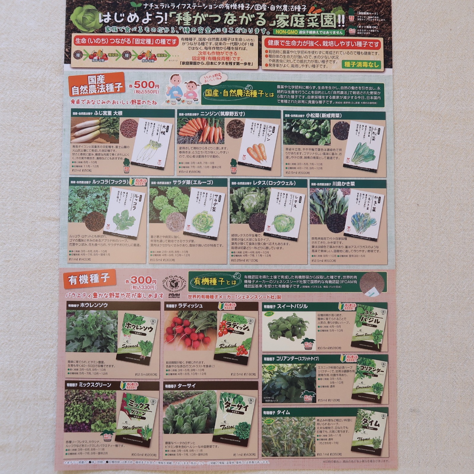 春蒔きに比べて種類は少なめなので、大体の種を店頭に揃えておりますが、並んでいない物は、3〜4日で1つからお取り引寄せ可能です、詳しくは店内のチラシをご参考にどうぞ。