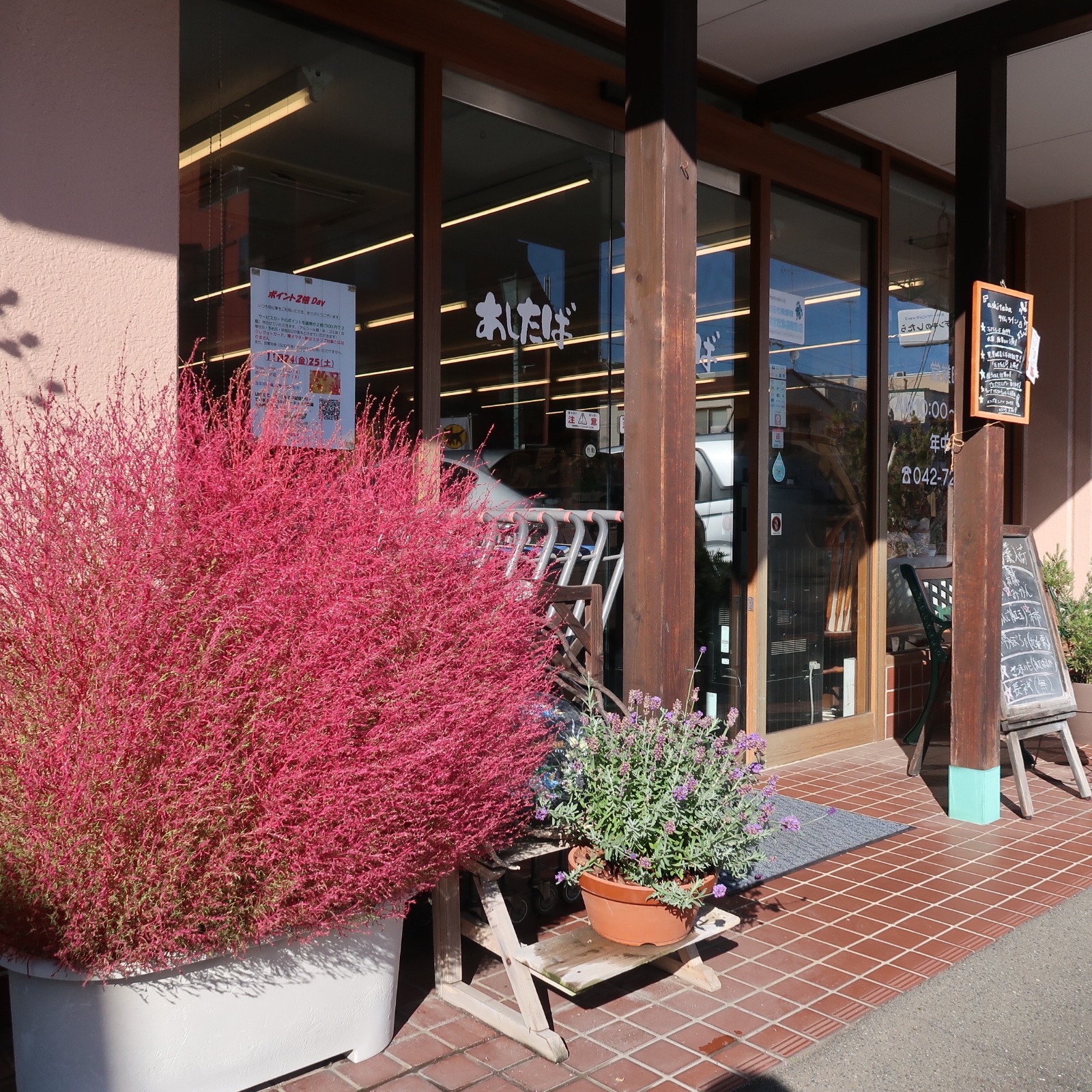 店前のコキアは赤く紅葉真っ盛りです🍁