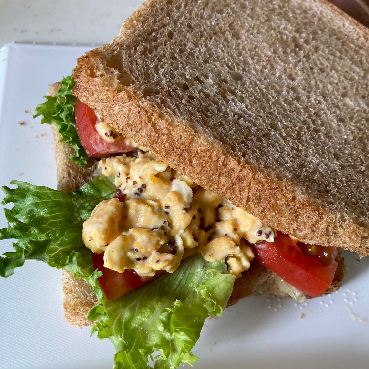 レタス、トマトを挟んで、粒マスタード入りたまごサンドなどはいかがでしょうか😄
