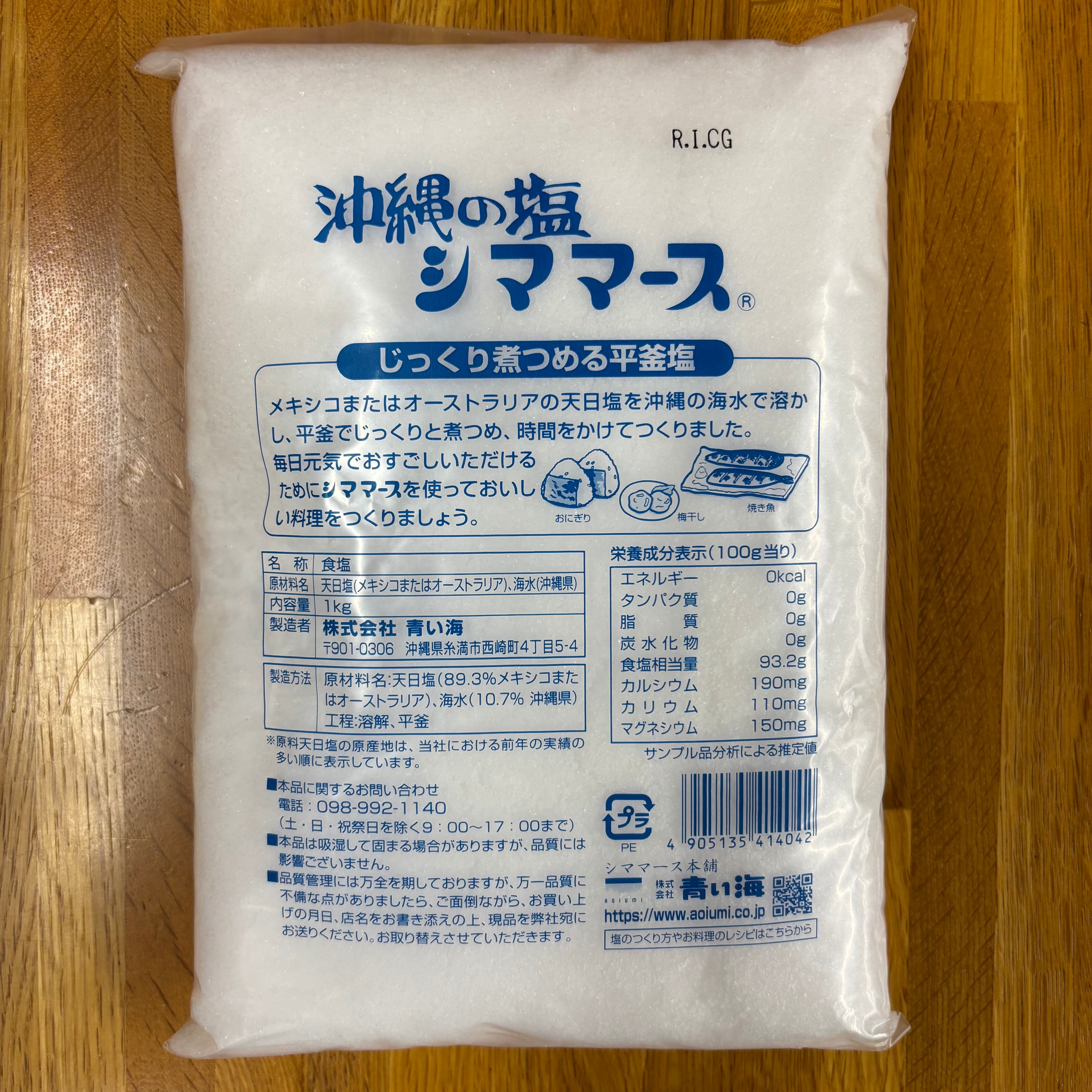 天日塩(89.3%メキシコまたはオーストラリア)、海水(10.7%沖縄)