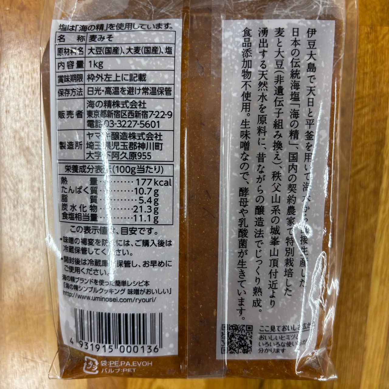 伊豆大島で天日と平釜を用いて海水から直接生産した日本の伝統海塩「海の精」、国内の契約農家で特別栽培した麦と大豆(非遺伝子組み換え)、秩父山系の城峯山頂付近より湧出する天然水を原料に、昔ながらの醸造法でじっくり熟成。
