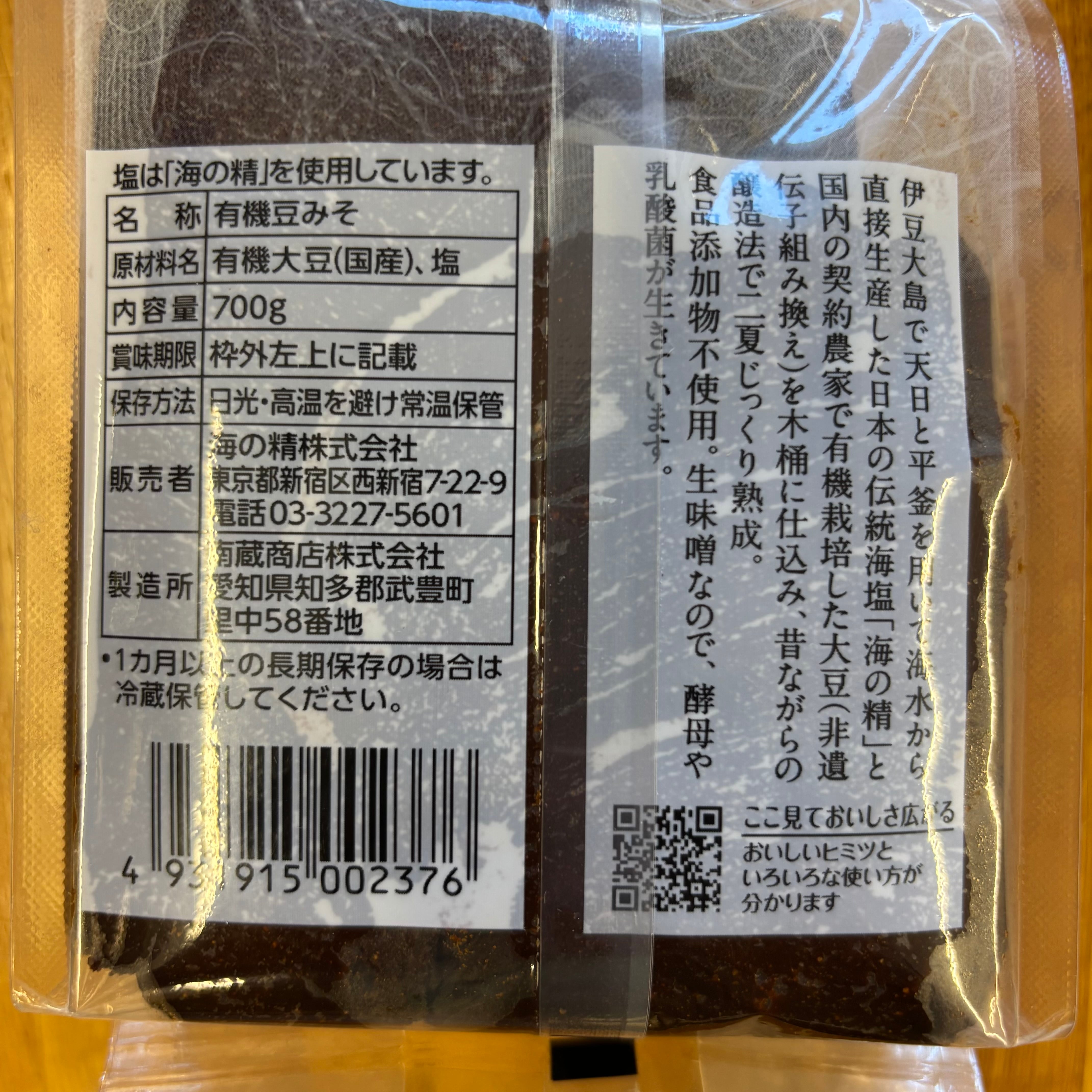 海の精 有機豆味噌 700g