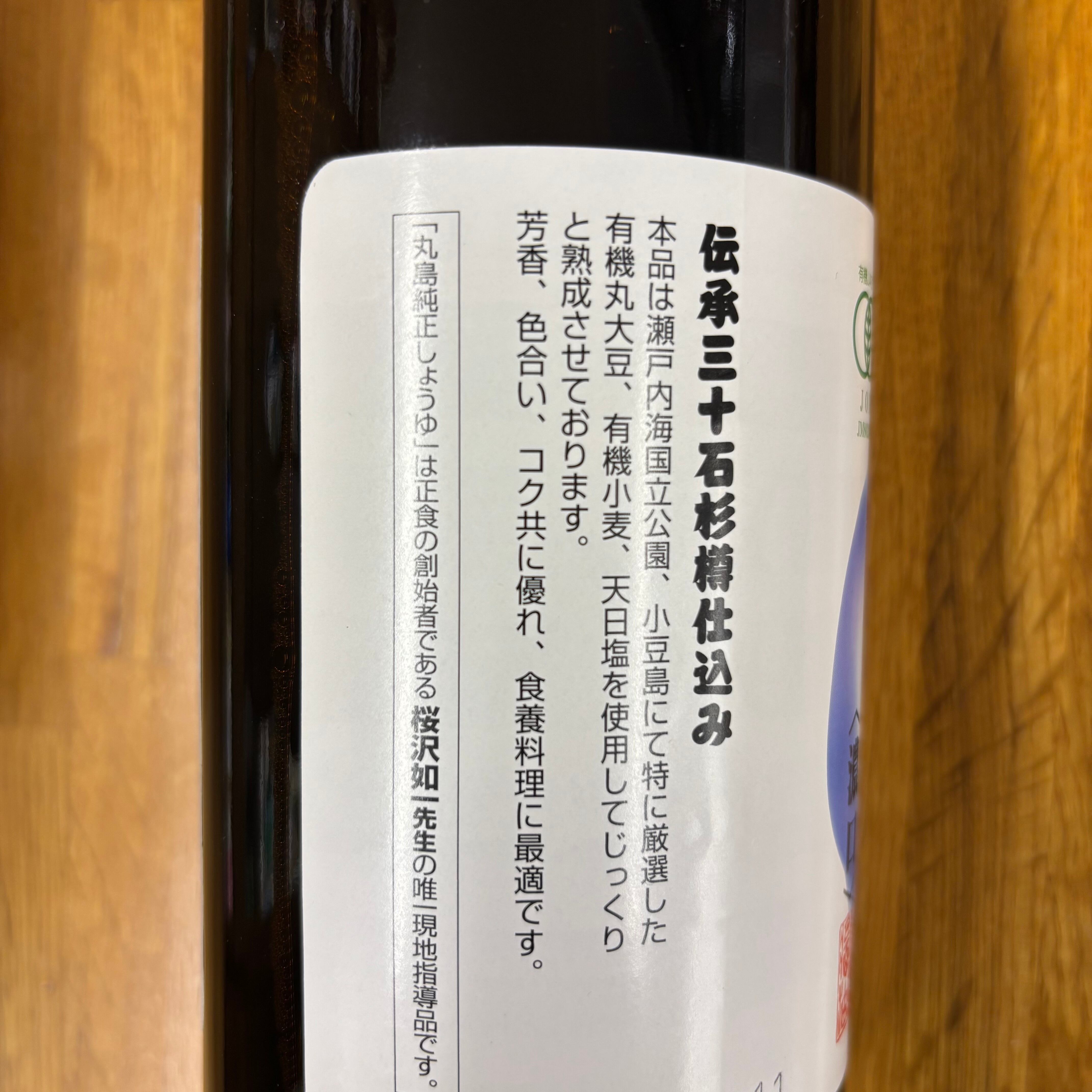 厳選した有機大豆、有機小麦、天日塩を使用し、瀬戸内海、小豆島にて杉樽で熟成した醤油です。