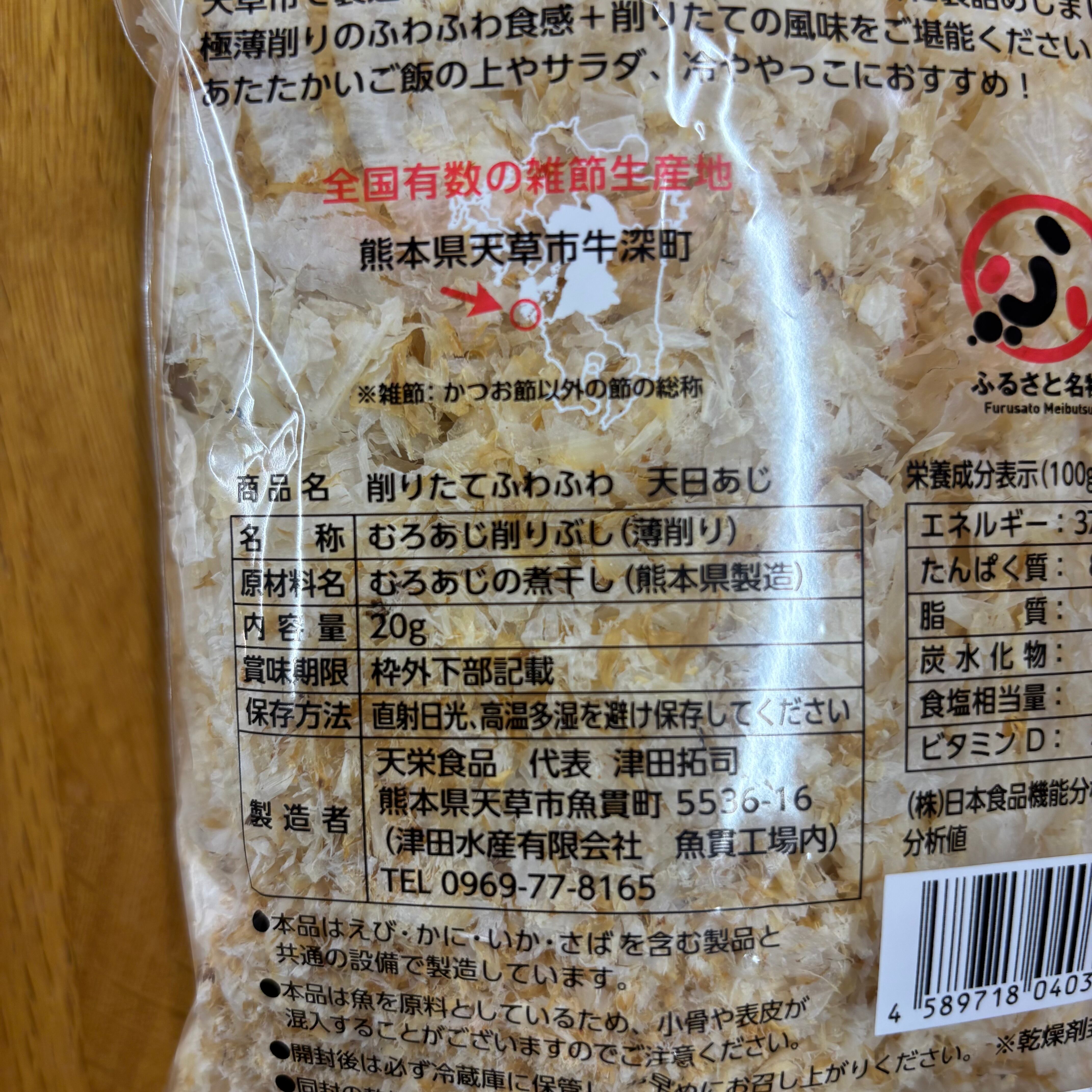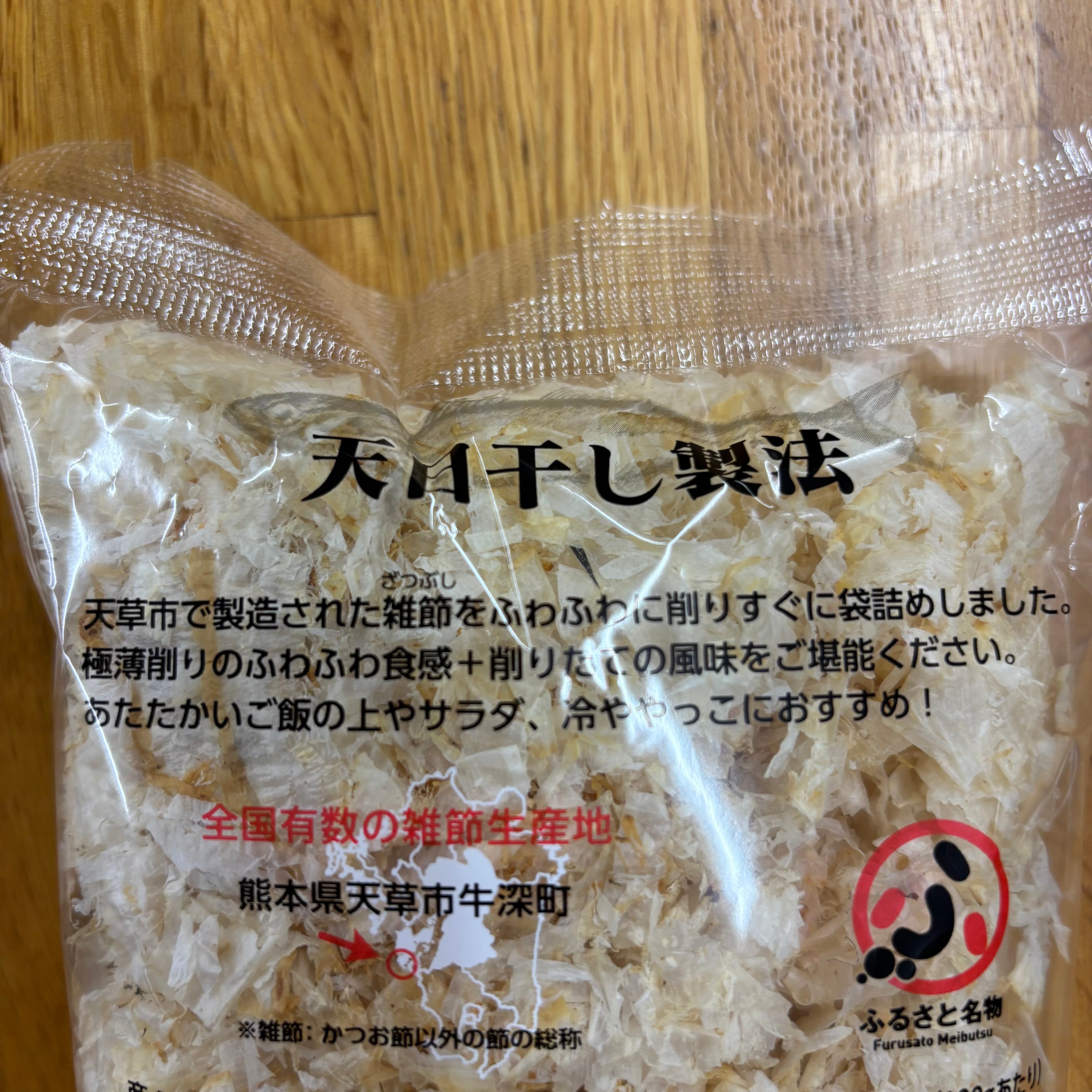 熊本県天草市で製造された雑節をふわふわに削りすぐに袋詰めしました。